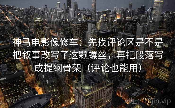 - 然后,把自己想象成“汽车技师”。 找到那些“松动的螺丝”和“磨损的零件”,尝试从整体逻辑上“拆解”电影,构建它的“骨架”。